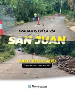 Se están llevando a cabo trabajos de mejoramiento de la vía en San Juan. Se estará regulando el paso. 𝙏𝙧𝙖𝙣𝙨𝙞𝙩𝙚 𝙘𝙤𝙣 𝙥𝙧𝙚𝙘𝙖𝙪𝙘𝙞𝙤́𝙣 𝙎𝘼𝙉 𝙅𝙐𝘼𝙉 Usa…